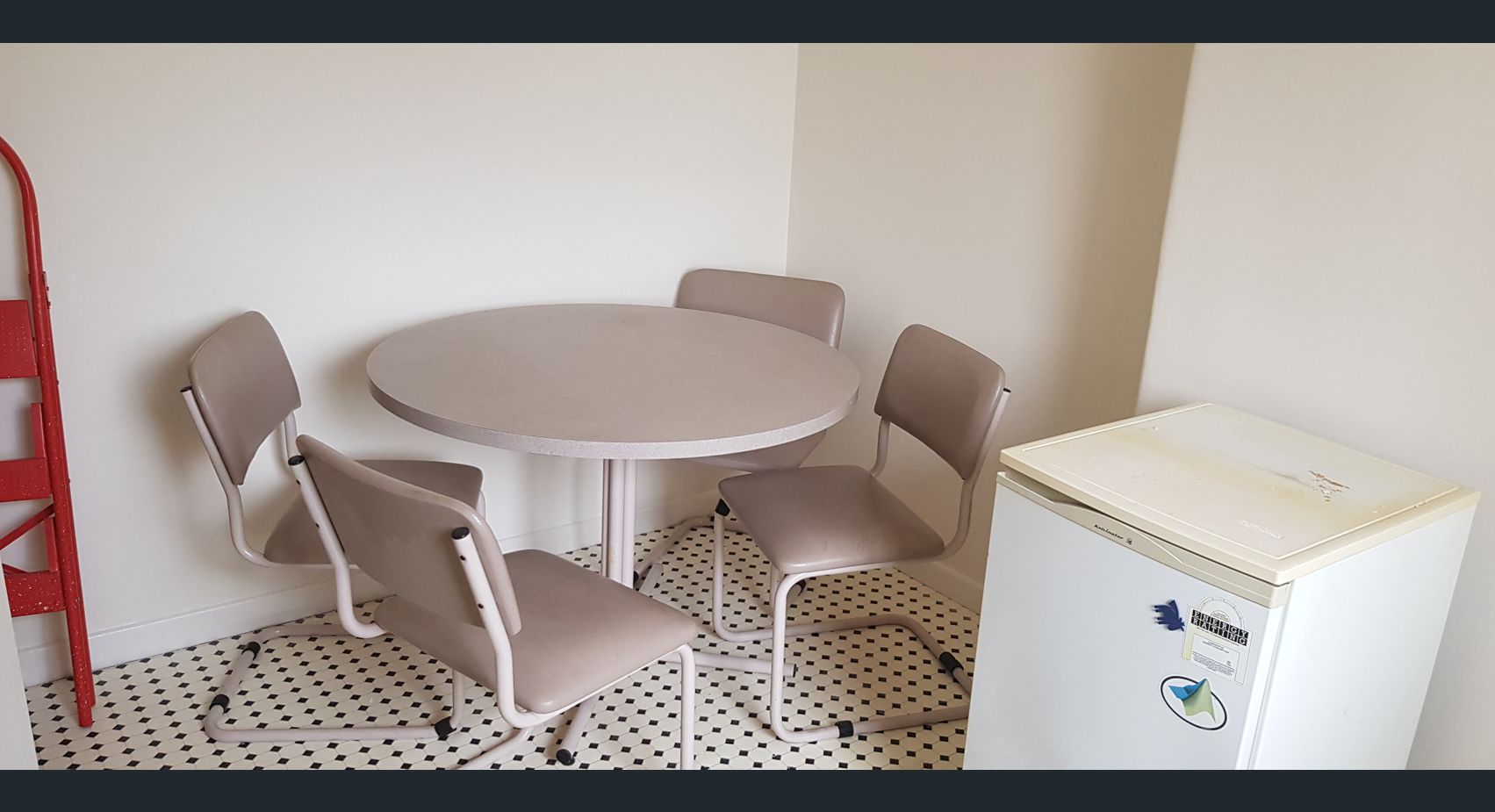 Also features a washing machine, half fridge, microwave, dining table with 4 chairs, desk, wardrobe and bookshelf.