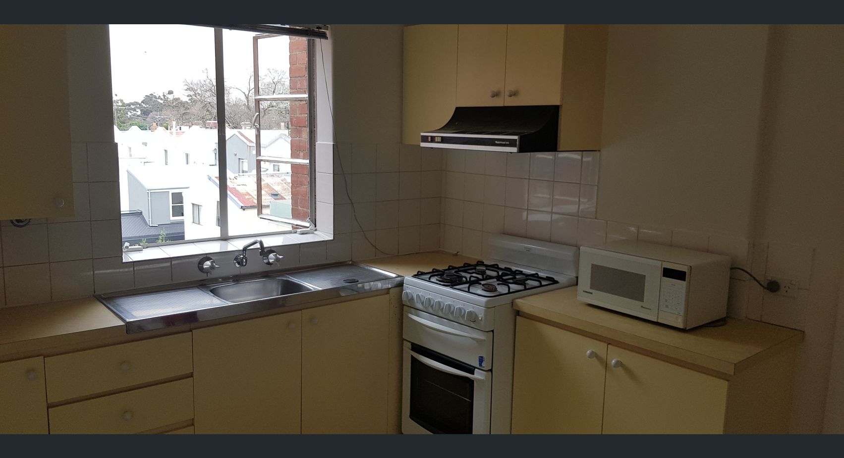 Separate sunny large combined bedroom / lounge room, large eat-in kitchen and separate bathroom with washing machine in large cupboard plus small foyer.